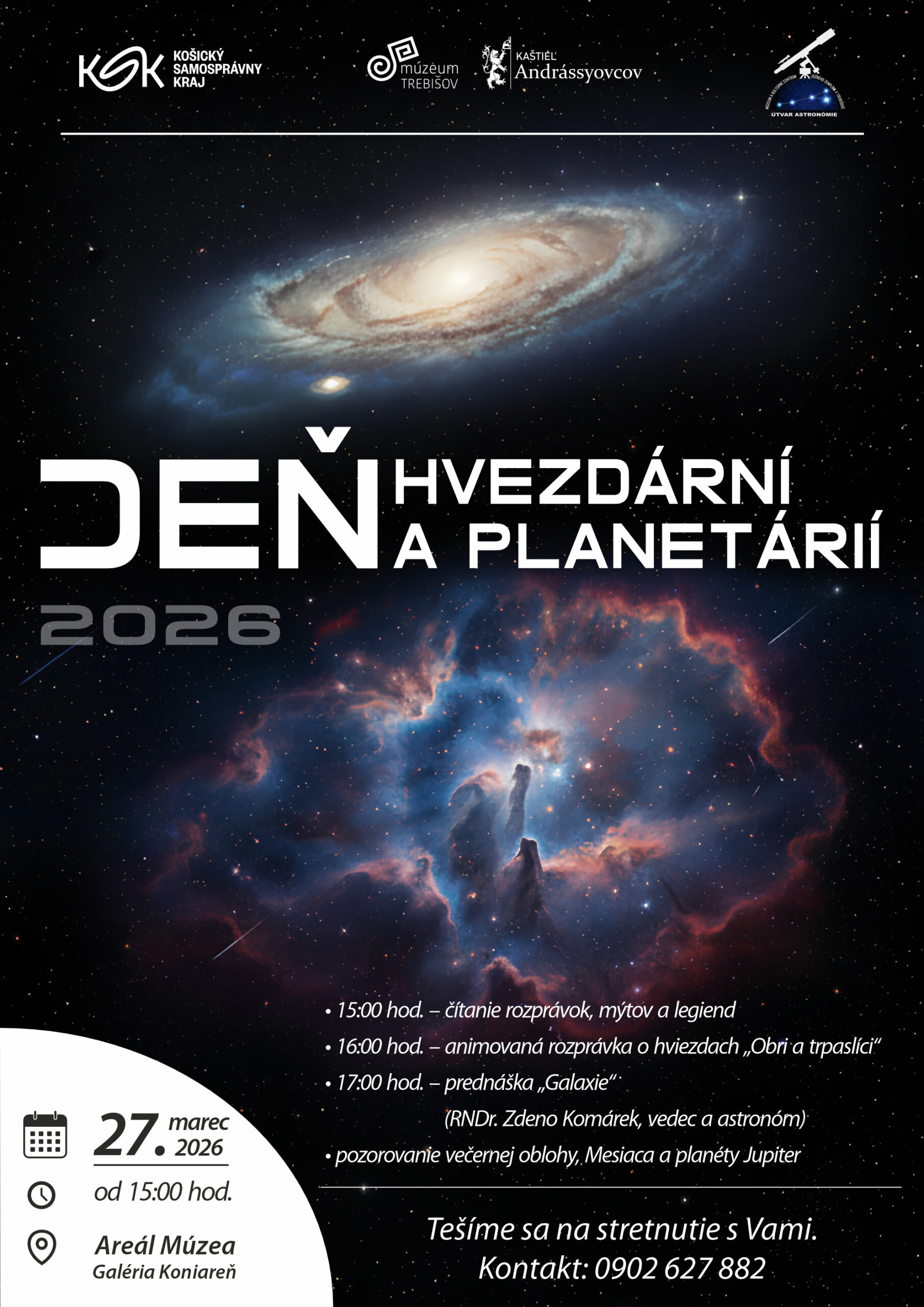 Útvar astronómie, ktorý je súčasťou Múzea a Kultúrneho centra južného Zemplína v Trebišove – kultúrneho zariadenia Košického samosprávneho kraja – pripravuje podujatie pre malých aj veľkých v piatok 27. marca 2026.