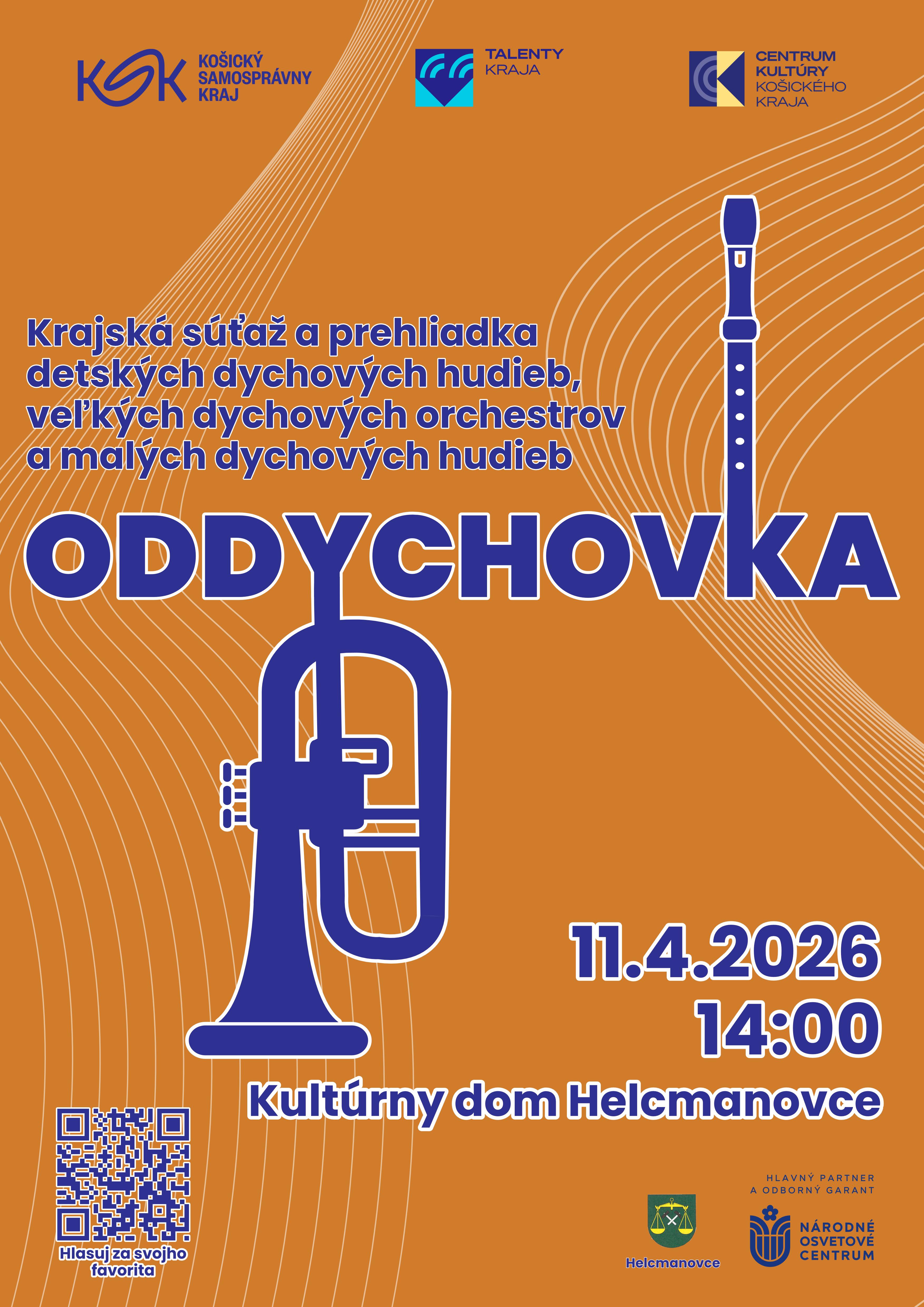 Centrum kultúry Košického kraja, kultúrne zariadenie Košického samosprávneho kraja, pripravuje 11. apríla 2026 o 14.00 hod. v Helcmanovciach krajské kolo celoštátnej postupovej súťaže a prehliadky dychových hudieb Oddychovka 2026, ktoré ponúkne hudobným kolektívom možnosť predstaviť výsledky svojej dlhodobej práce aj krásu a energiu dychovej hudby pred odbornou porotou a verejnosťou. Súťaž má charakter prehliadky a zároveň prináša odbornú spätnú väzbu, ktorá kolektívom pomáha prirodzene sa rozvíjať a posúvať ďalej.