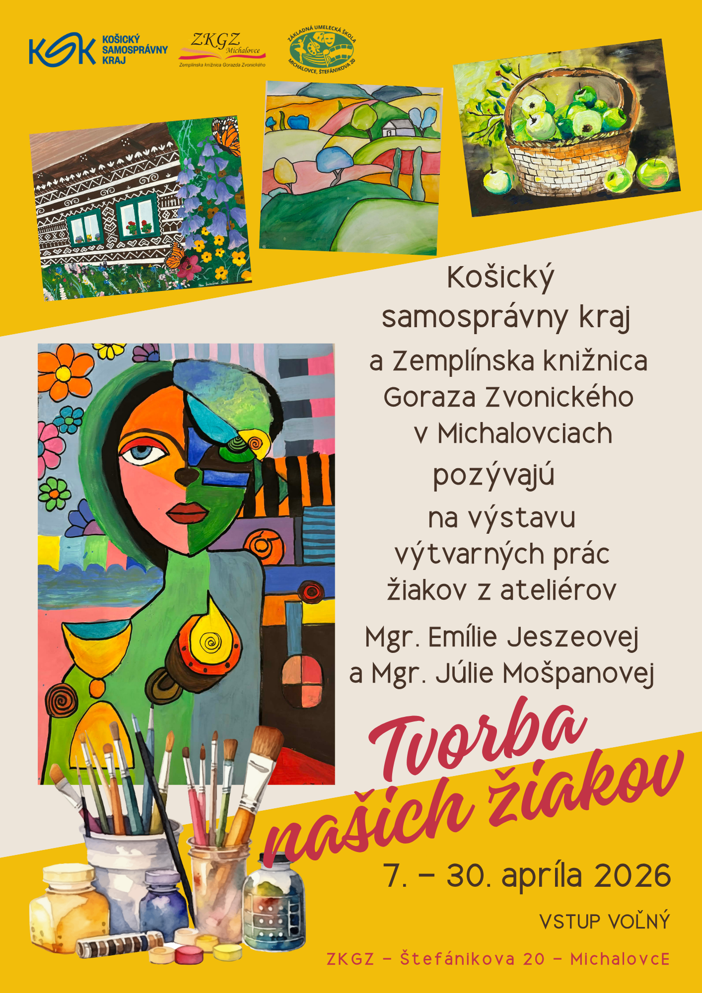 Výstava predstavuje pestrú kolekciu obrazov, ktoré spája rozmanitosť tém aj umeleckých prístupov. Každá práca je dielom, ktoré ponúka jedinečný pohľad na svet – od realistických zobrazení prírody a portrétov, cez abstraktné kompozície, až po tiché zátišia. Žiaci pracujú s rôznymi technikami kresby a maľby, ako je akvarel, akryl, tempera, kresba ceruzou a tušom a ich rôzne kombinácie. Rôznorodosť myšlienok a námetov umožní každému divákovi nájsť niečo blízke, obraz, ktorý ho osloví, prekvapí alebo inšpiruje.